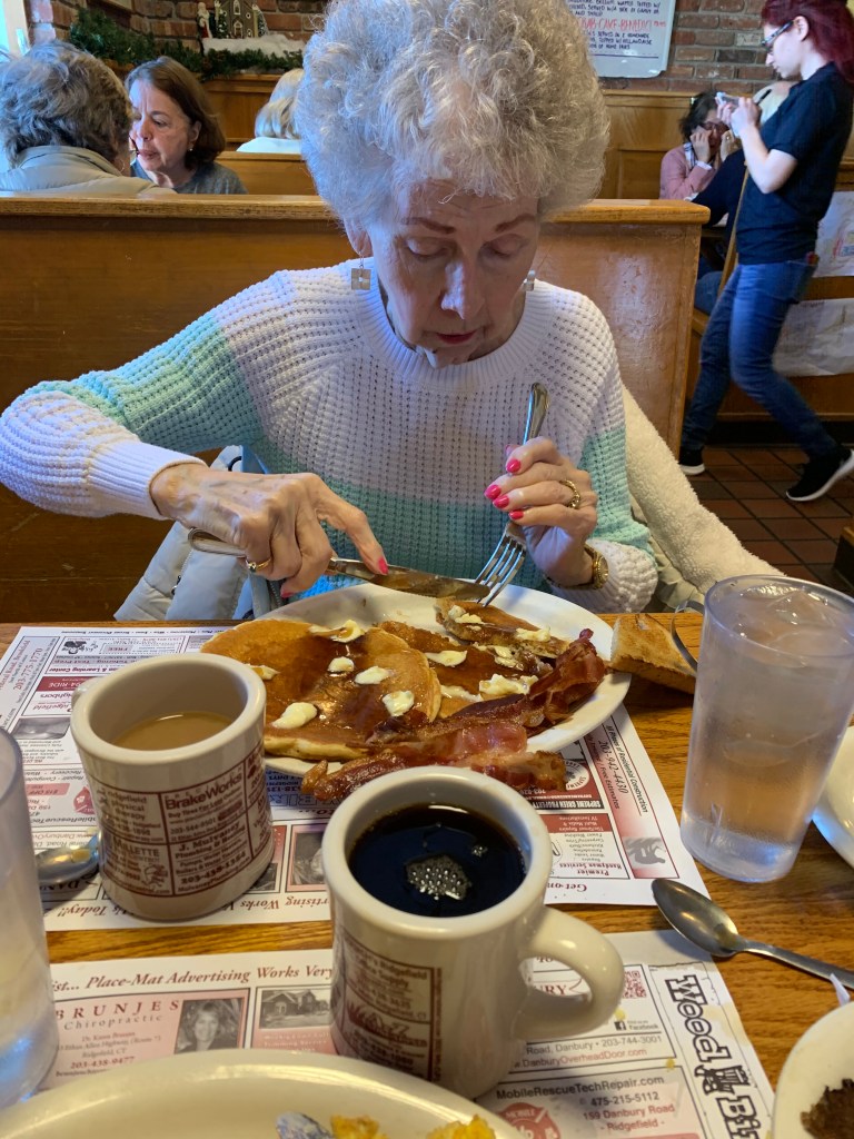 So Dr goes fine, I’m then taken to breakfast to discuss what is now known as the “Maria Situation” Happily today I asked my cleaner if anyone she know can handle Gma. Just so happens one of her girls, who knows Gma, said she’ll help out. Bless her. We’ll see how long this lasts. Meanwhile, at breakfast she gets 2 pancakes and covers them with butter and tons of syrup. She’s been losing a bit of weight, which has come back, and now we know why…how a woman who’s 111 lbs can eat like this, I don’t know. Those pancakes were drenched! But she was happy.